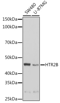特异性The antibody detects endogenous level of total HTR2B protein.