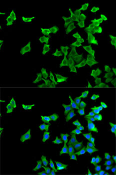 Immunofluorescence analysis of U2OS cells using HTR2B antibody.