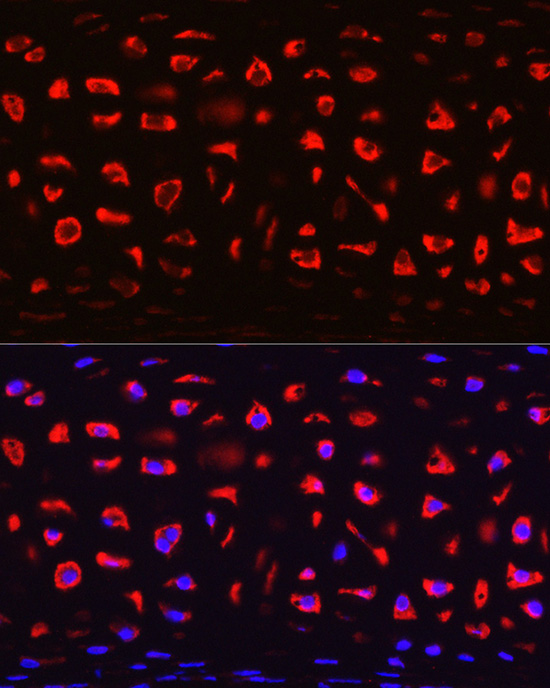 Immunofluorescence analysis of Rat cartilage using COMP Rabbit pAb.