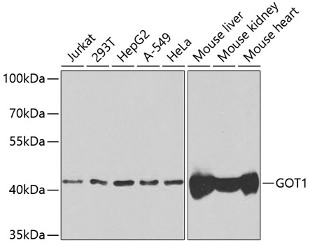 特异性The antibody detects endogenous level of total GOT1 protein.