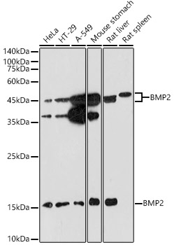 特异性The antibody detects endogenous level of total BMP2 protein.