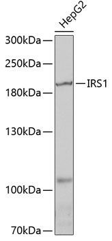 Western blot analysis of extracts of HepG2 cells, using IRS1 antibody at 1:1000 dilution.
