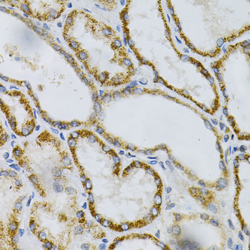 Immunohistochemistry of paraffin-embedded human kidney using PTPRA antibody at dilution of 1:100 (40x lens).