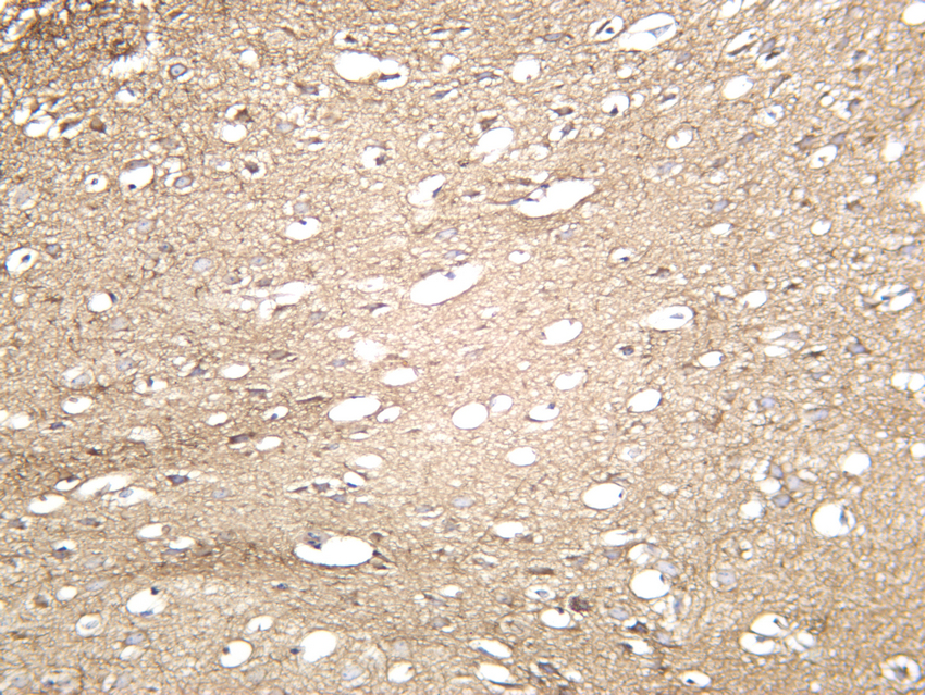 Immunohistochemistry of paraffin-embedded Mouse brain using APP antibody.
