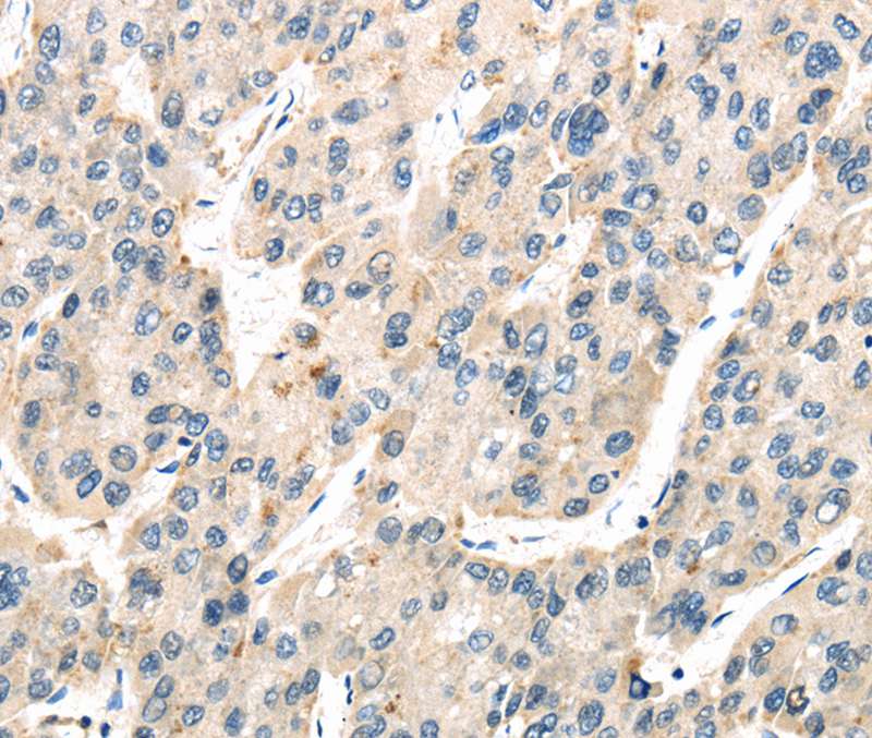 Immunohistochemical analysis of paraffin-embedded Human liver cancer tissue using #40274 at dilution 1/50.