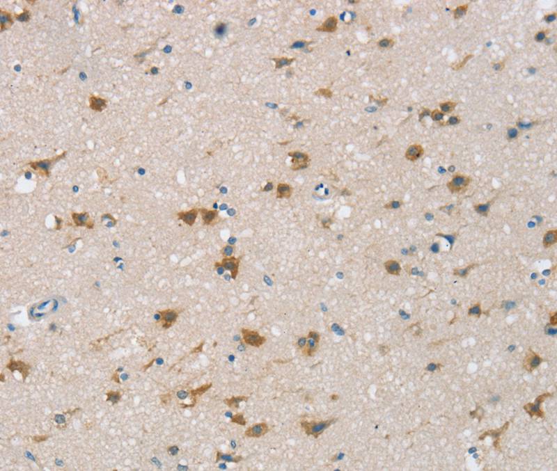 Immunohistochemical analysis of paraffin-embedded Human brain tissue using #40391 at dilution 1/25.