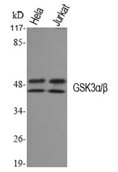 特异性GSK3α/β Polyclonal Antibody detects endogenous levels of GSK3α/β protein.