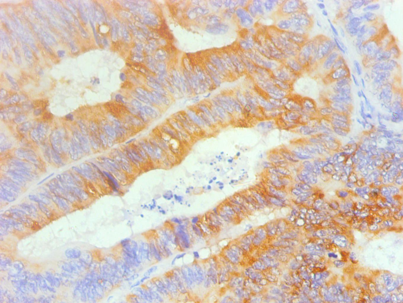 Immunohistochemical analysis of paraffin-embedded human colon cancer using #42028 at dilution of 1:200.