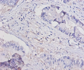 Immunohistochemical analysis of paraffin-embedded human colon cancer using #42462 at dilution of 1:100.