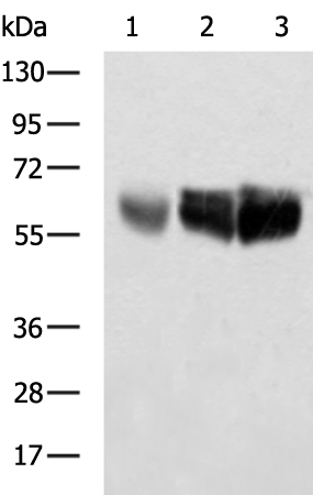 Lane 1-3: HepG2 cell, Rat liver tissue, HT-29 cell lysates;