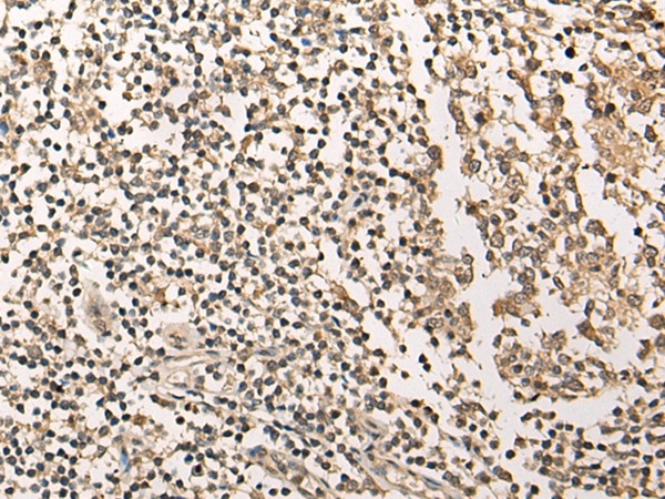 The image on the left is immunohistochemistry of paraffin-embedded Human tonsil tissue using 46701(UTP11 Antibody) at dilution 1/30, on the right is treated with fusion protein. (Original magnification: x200)