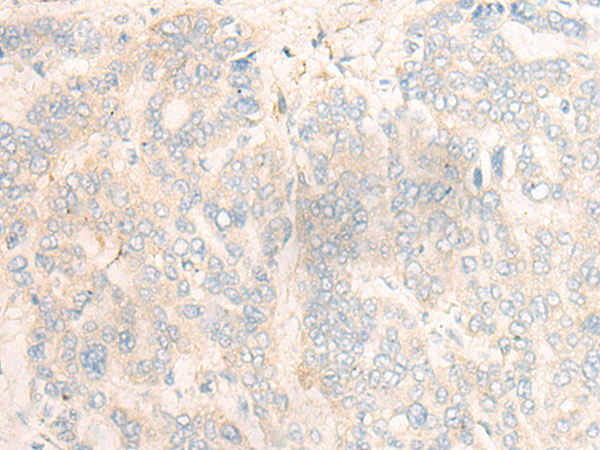The image is immunohistochemistry of paraffin-embedded Human liver cancer tissue using 47022(DBX1 Antibody) at dilution 1/20. (Original magnification: ?00)