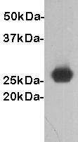 Western blot analysis on GST fusion protein (26kDa) using anti-GST polyclonal antibody.