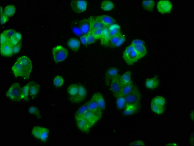 Immunofluorescence staining of MCF-7 cells with IGF1R Antibody , counter-stained with DAPI.