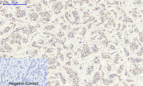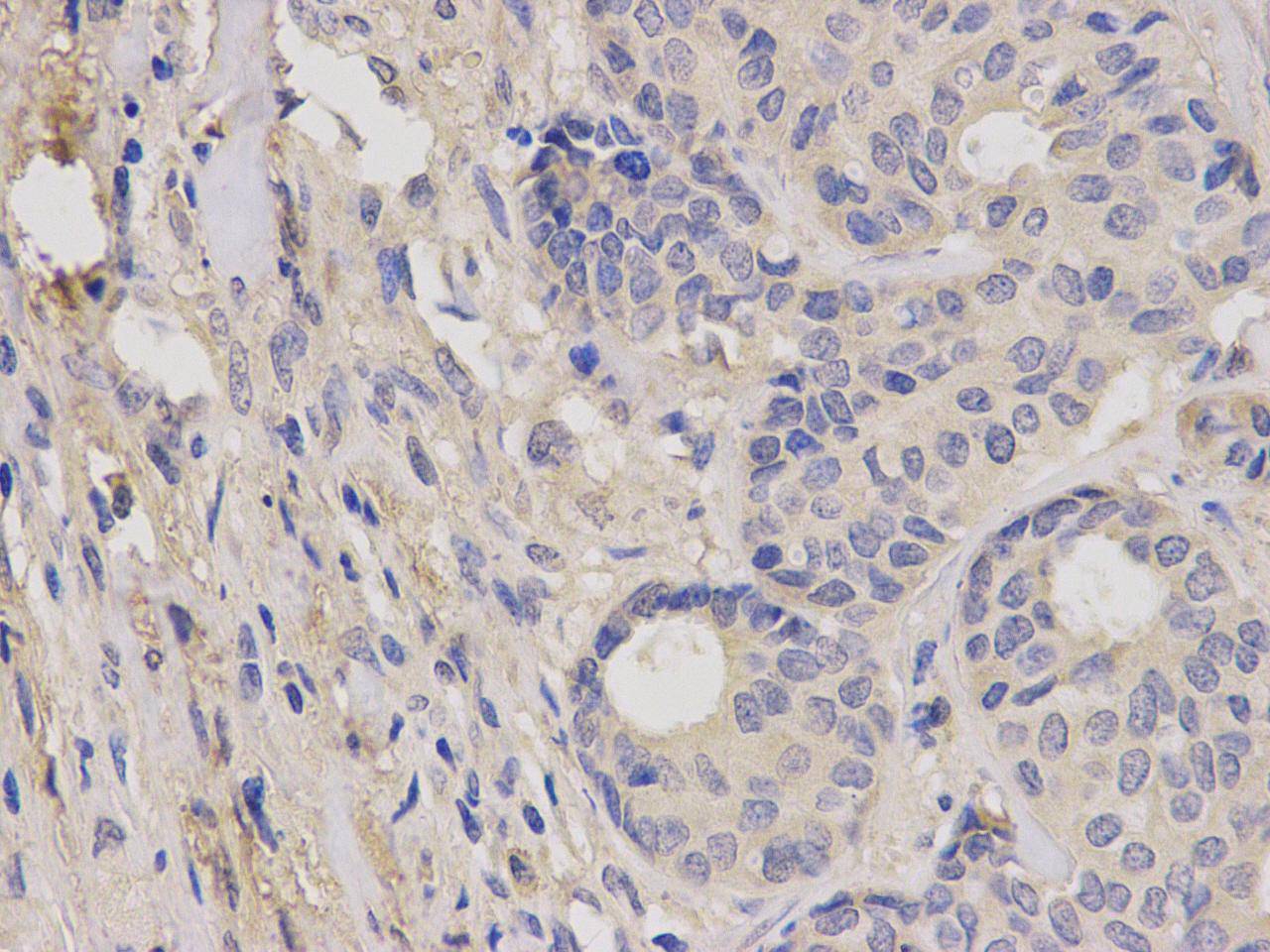 Immunohistochemical analysis of paraffin-embedded human breast carcinoma tissue using anti- IGF1R rabbit polyclonal antibody.
