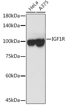 Western blot analysis of extracts from Hela and A375 cells using IGF1R Antibody.