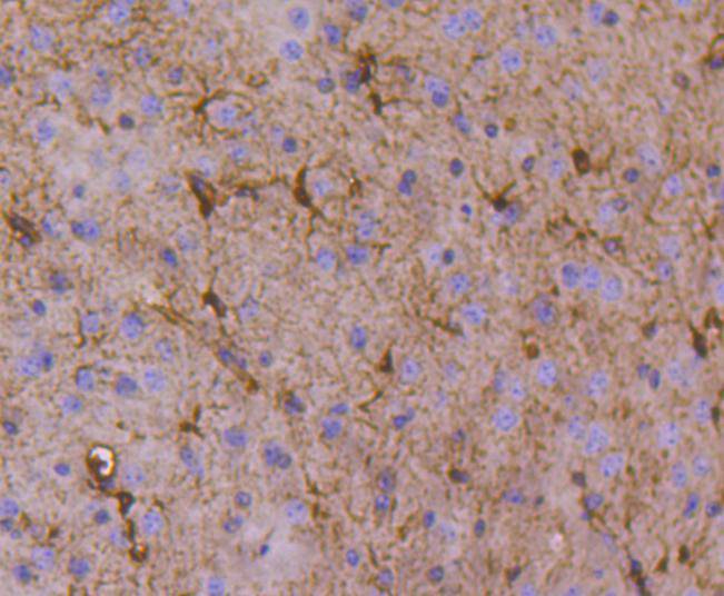 Immunohistochemical analysis of paraffin-embedded mouse brain tissue using anti-IKB alpha antibody. Counter stained with hematoxylin.
