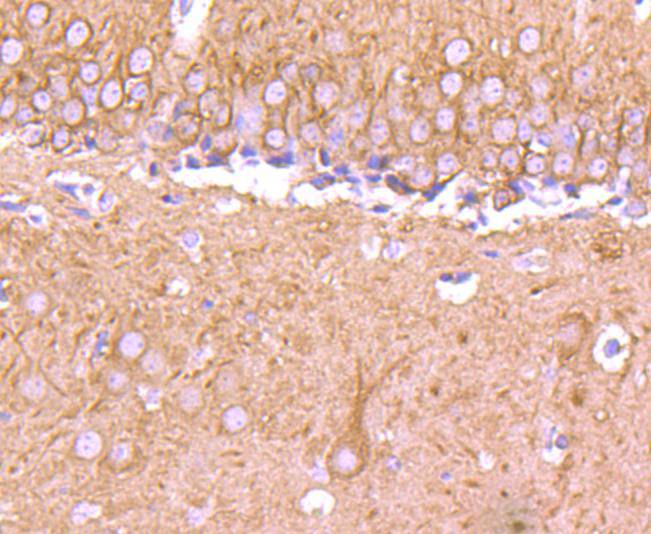 Immunohistochemical analysis of paraffin-embedded mouse brain tissue using anti-Tubulin beta-III antibody. Counter stained with hematoxylin.