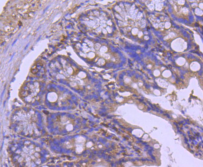 Immunohistochemical analysis of paraffin-embedded mouse colon tissue using anti-PTEN antibody. Counter stained with hematoxylin.
