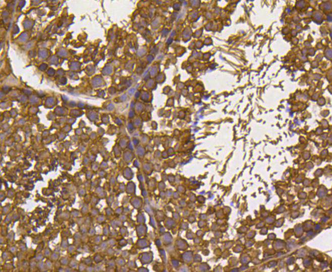 Immunohistochemical analysis of paraffin-embedded mouse testis tissue using anti-Ubiquitin antibody. Counter stained with hematoxylin.