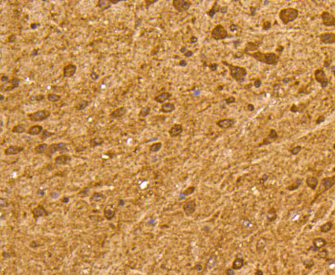 Immunohistochemical analysis of paraffin-embedded mouse brain tissue using anti-Ubiquitin antibody. Counter stained with hematoxylin.