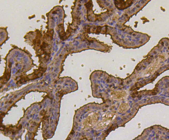 Immunohistochemical analysis of paraffin-embedded mouse placenta tissue using anti-Ubiquitin antibody. Counter stained with hematoxylin.