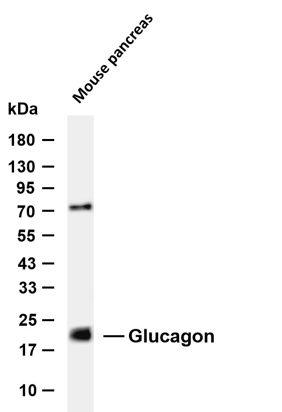 Various whole cell lysates were separated by 4-20% SDS-PAGE, and the membrane was blotted with anti-Glucagon antibody.